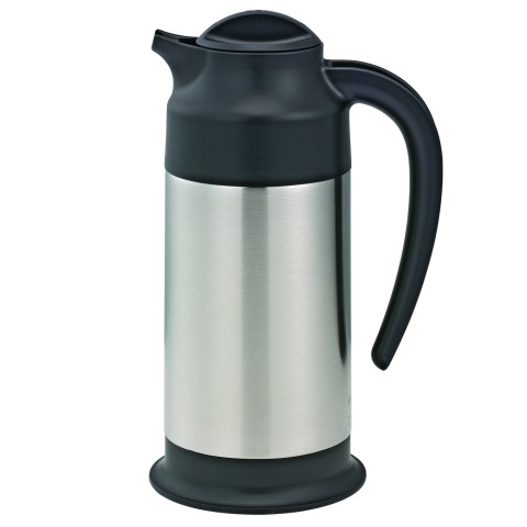 SteelVac™ Vacuum Creamer, 0.7 liter (23.7 oz.), 4-1/2" x 6" x 9", retention: 4-6 hours, dishwasher safe, smooth body, double-wall, unbreakable liner, screw-on lid, black plastic footed base, stainless steel, brushed, NSF (Priced per each, packed 6 each per case)