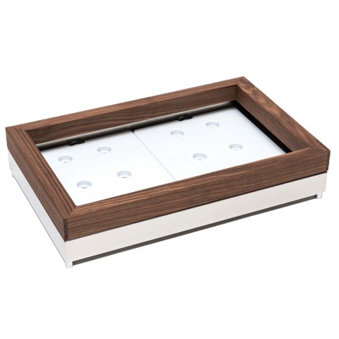 Ze Pe Fantasy Custom Buffet Displays, service tray, 22.6"D x 14.25"W x 4.5"H, wood & stainless steel base, dual color base, walnut, (contact factory for price)