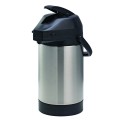 Lock ‘N’ Carry Airpot, 2.5 liter (84.5 oz.), 6-1/4" x 9" x 13", retention: 4-6 hours, smooth body, double wall, black lid with locking mechanism, vacuum insulated, lever style, hand wash (do not submerge), 18/8 stainless steel, brushed finish, NSF (Priced per each, packed 6 each per case)