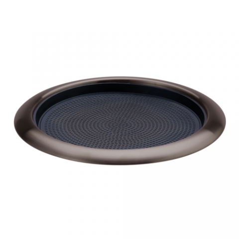 Non-Slip Tray, 11"W x 11"D x 1"H, removable insert, round serving tray, dark tungsten PVD, dark tungsten, stackable, dishwasher safe