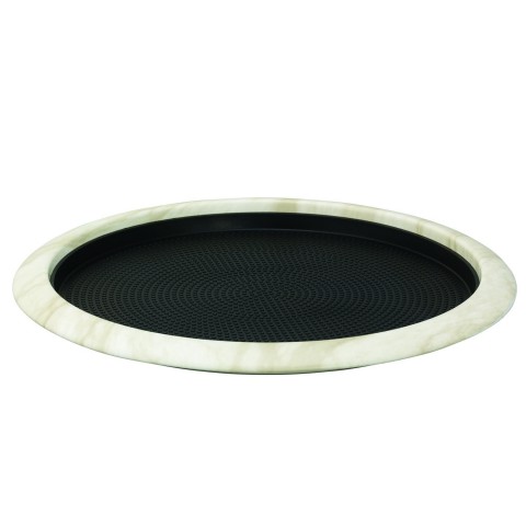 Natural Elements Tray, 14" dia. (12" dia. inside), round, stackable, removable silicone rubber insert, non-slip, hand wash only, 18/8 stainless steel, white marble (Priced per each, packed 12 each per case)