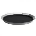 Non-Slip Tray, 14" Dia. x 1-1/2"H, removable insert, (12) sided serving tray, 18/8 stainless steel, black silicone rubber, stackable, brushed stainless black