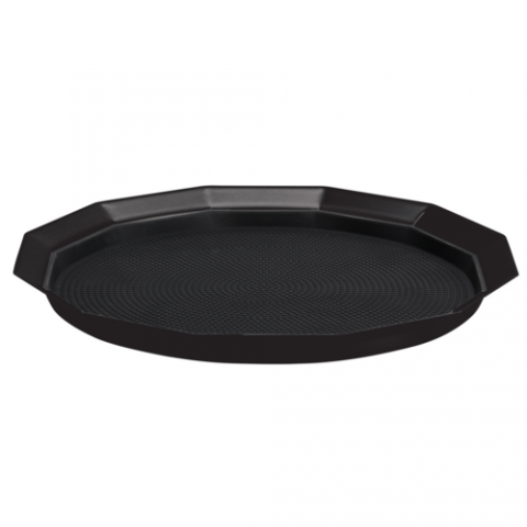 Non-Slip Tray, 14" Dia. x 1-1/2"H, removable insert, (12) sided serving tray, 18/8 stainless steel, black silicone rubber, stackable, black onyx