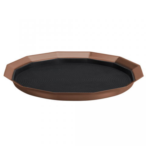 Non-Slip Tray, 14" Dia. x 1-1/2"H, removable insert, (12) sided serving tray, 18/8 stainless steel, black silicone rubber, stackable, rose gold
