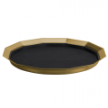 Non-Slip Tray, 14" Dia. x 1-1/2"H, removable insert, (12) sided serving tray, 18/8 stainless steel, black silicone rubber, stackable, vintage gold