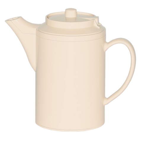 Teapot, 0.5 liter (16 oz.), 3-1/2" x 6-1/2" x 6", retention: 2-3 hours, dishwasher safe, double-wall insulated, self-locking lid without tether, baffled spout, dripless, flow-controlled spout, ABS plastic, almond, Made in USA (Priced per each, packed 6 each per case)