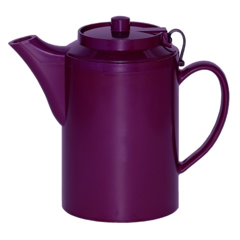 Teapot, 0.5 liter (16 oz.), 3-1/2" x 6-1/2" x 6", retention: 2-3 hours, dishwasher safe, double-wall insulated, self-locking lid with tether, baffled spout, dripless, flow-controlled spout, ABS plastic, burgundy, Made in USA (Priced per each, packed 6 each per case)