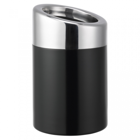 Trash Can, 50.72 oz capacity, 5.5" dia. x 8"H, countertop, 18/8 stainless steel, dishwasher safe, removable lid, brushed, black onyx (priced per each, packed 6 each per case)