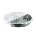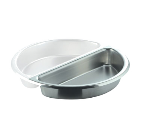 Chafing Dish Food Pan, 1/2 size, 3-2/5 qt. (3-1/4 liter) each, 15-1/4"L x 7-5/8"D x 2-1/2"H, round, rust & scratch resistant, 18/10 stainless steel (2 each per set) (fits all large round chafing dishes)