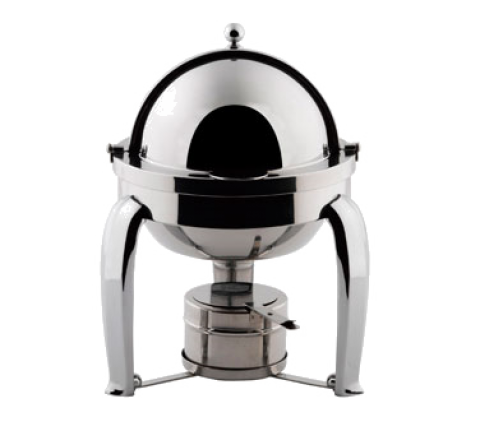 Odin Mini Chafer Dish, 1 qt.(1.05 liter), 9"L x 8"D x 12-1/4"H, round, lid can open to 90° or lift up, includes: mini porcelain food pan, fuel cup holder, bolt & screw assembly, chrome plated legs, 18/10 stainless steel, polished finish