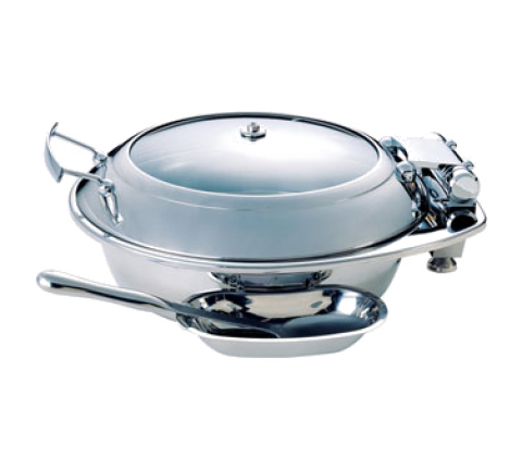 Smart Buffet Chafing Dish, large, drop-in capable, 6-9/10 qt. (6-1/2 liter), 19-1/2"L x 17"D x 9"H, round, induction ready, glass self-closing hinged lid, insulated handle, includes: full size food pan, bolt & screw assembly, 18/10 stainless steel, polished finish (base not included)
