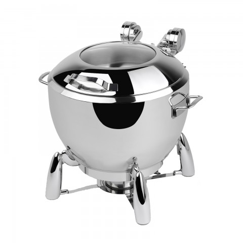 Smart W Buffet Soup Urn, 10-3/5 qt. (10 liter) capacity, 20”L x 17-1/2”D x 11-7/8”H, round, induction ready, glass removable self-closing lid, clad bottom, rust & corrosion resistant, water recycling system, bolt & screw assembly, 18/10 stainless steel, polished finish (base not included)