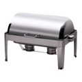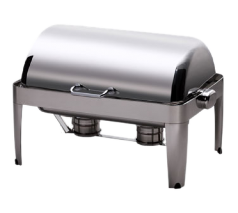 Ibis Chafing Dish, 8-1/2 qt. (8 liter) capacity, 27"L x 18"D x 18"H, oblong, 90° to 180° roll top lid, stackable, insulated handle, water control system, includes: full size oblong food pan, dripless water pan, (2) fuel cup holders, bolt & screw assembly, stainless steel legs, 18/10 stainless steel, polished finish