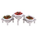 Cold Display Set, 10" x 10", includes: (3) small 3-1/2" dish stand (1A19402090) (3) mini full size 18/10 stainless steel water pans (1A12910400) (3) small 1.3 qt. dish/bowls (1ASBW19403) (1) extra set of 18/10 stainless steel legs (set of 2) (1A194022602) NSF