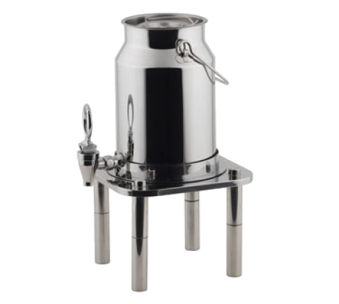Domino Milk Dispenser, 1.3 gallon (5 liter) capacity, 10"L x 10"D x 18-1/2"H, rust/scratch/corrosion resistant, stainless steel ice core, 18/10 stainless steel, polished finish