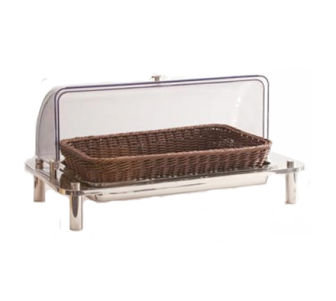 Domino Bread Basket Display, 26”L x 16”D x 14”H, oblong, includes: 3-1/2" stand, basket & acrylic domed cover, rust & corrosion resistant, 18/10 stainless steel, polished finish