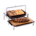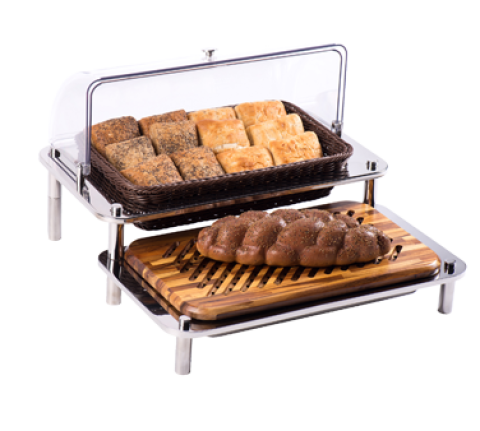 Domino Basket & Cutting Board Display Set, includes: (1) bread cutting board (1A19411090) (1) bread display with dome cover (1A19413090) 18/10 stainless steel, polished finish (shipped in multiple boxes)
