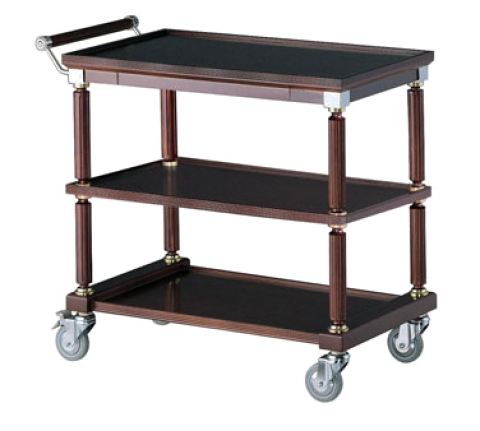 Palace Service Trolley 2, 36-3/4"L x 19-3/4"D x 33-1/4"H, push handle, top/middle/bottom shelves, all stainless steel hardware, casters, hardwood & plywood