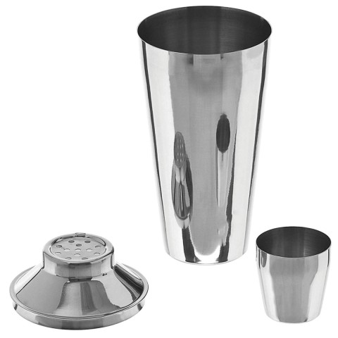 Cocktail Shaker Set, 3-piece, 28 oz., 3-3/4" dia. x 9-1/2"H overall, includes: (1) shaker, (1) strainer, and (1) jigger, stainless steel