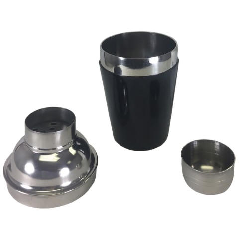 Deluxe Cocktail Shaker Set, 3-piece includes: 8 oz. shaker, strainer, jigger, stainless steel black vinyl-coated