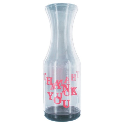 Tip Jar, 10-3/4"H, carafe-shaped, imprinted "Thank You" in red letters, bottom unscrews for easy access, plastic, clear