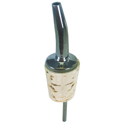 Spill-Stop® Tapered Pourer, fits 1/2 gal. bottles, seamless spout, with natural cork, controlled medium speed, chrome, Made in USA (packed one dozen per poly bag)