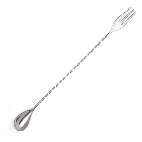 Trident Mixing Bar Spoon, 11-4/5" (30cm), fork-end, stainless steel, polished finish (individually packaged)