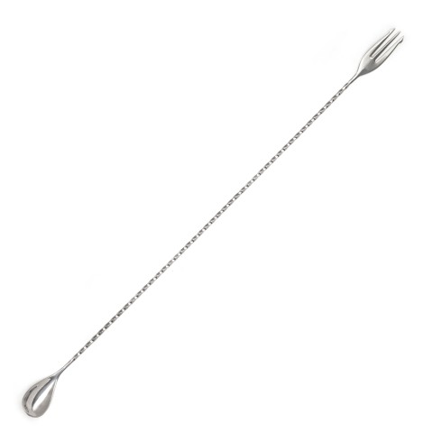 Trident Mixing Bar Spoon, 19-11/16" (50cm), fork-end, stainless steel, polished finish (individually packaged)