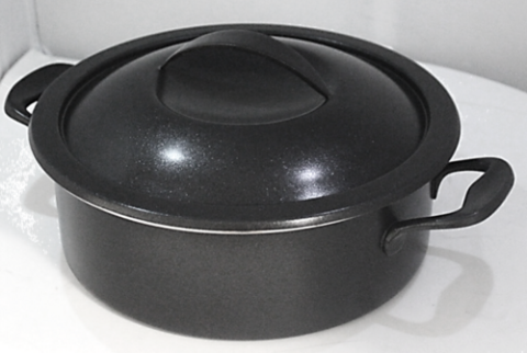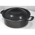 Homestyle induction server with insert, 5.6"H x 14.1"W x 11.4"D, black finish, 4 quart, round, fitted cover, stainless steel construction with coated finish, versatile for induction, electric, gas, and fuel, oven-safe, welded handles without rivets, easy-to-read water fill line, removable and dishwasher safe stainless steel insert, black finish homestyle induction server with insert