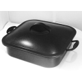 Homestyle induction server with insert, 5.1"H x 16"W x 12.8"D, black finish, 4 quart, square, homestyle design, stainless steel construction with coated finish, versatile for induction, electric, gas, and fuel, oven-safe, welded handles without rivets, easy-to-read water fill line, removable and dishwasher safe stainless steel insert, black finish homestyle induction server with insert