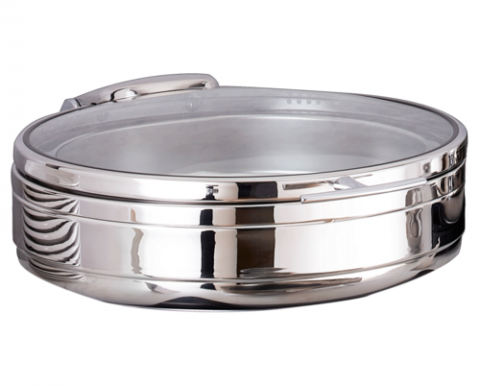 Radiance Induction Buffet Server, 6 qt., 16" dia., round, stainless steel insert pan (included), glass lid with zinc alloy handles, stainless steel (Stock Item)