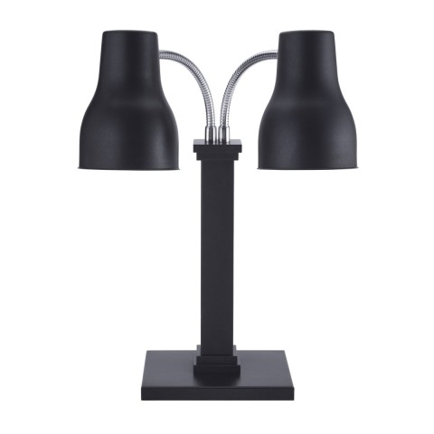 Double Heat Lamp, 10-3/5"W x 9-1/10" base, 17" overall depth (base to front of shade), 24-9/10" overall height, adjustable neck, built in receptacle, 18/8 stainless steel, black matte finish, includes: (2) 250 watt bulbs, 110-120v/60/1-ph, 4.2 amp, NEMA 5-15P, cETLus, UL-STD 197, CSA- Std. C22.2 No. 109 (Stock Item)