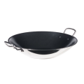 Vulcano Induction Wok Pan, 5-1/4 qt., 13-3/4" dia. x 3-1/8"H, multi-ply, Whitford Quantanium stick resistant finish, withstands temperatures up to 500°F, flat bottom, 2 short side handles, for gas, and electric cooking, 18/10 stainless steel exterior surface (Stock Item)