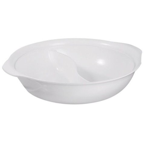 Motif Casserole Pan, 3-3/4 qt., 12" dia. x 3-1/4" deep, divided, round, with tempered glass cover, Teflon® non-stick and QuanTanium® interior, coated stainless steel induction base, two-ply exterior, constructed of cast aluminum with ceramic reinforced finish, white (Stock Item)