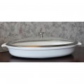Motif Roaster, 3 qt., 15"L x 10"W x 2-1/4" deep, oval, shallow, with tempered glass cover, Teflon® non-stick and QuanTanium® interior, coated stainless steel induction base, two-ply exterior, constructed of cast aluminum with ceramic reinforced finish, white (Stock Item)