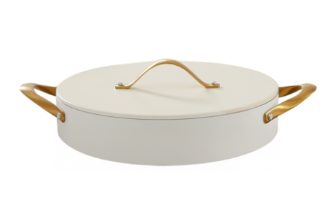 Ambassador Induction Chafer Casserole Dish, 4 qt (3.785 liter), 11" dia. x 2.75"H, ivory, cast-iron aluminum and ceramic material, Limited Lifetime, 1-year warranty coating & handles