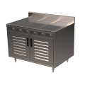 BOH Induction Flameless Cooking Cart, electric, 48", (6) 1,800 watt burners, manual controls, 304 stainless steel welded construction, enclosed cabinet base with doors, (1) fixed shelf, adjustable feet, 110-120v/60/1-ph, 15.0 amps, UL, ETL, ETL Sanitation (Made in the USA of domestic and imported parts)