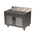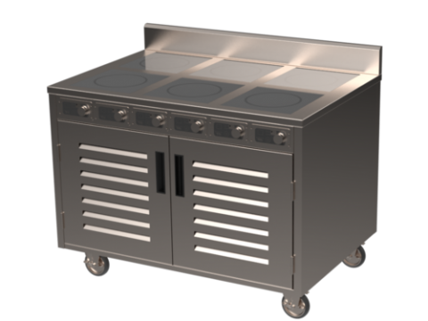 BOH Induction Flameless Cooking Cart, electric, 48", (6) 2,600 watt burners, manual controls, 304 stainless steel welded construction, enclosed cabinet base with doors, (1) fixed shelf, casters, 208-240v/60/1-ph, 10.8 amps, UL, ETL, ETL Sanitation (Made in the USA of domestic and imported parts)