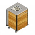 Mobile Hand Washing Station, 27-1/2"W x 29-4/5"D x 40-5/16"H to top of sink, 10" x 12" x 5" sink bowl, 5 gallon fresh water capacity, 7 gallon waste water capacity, 2.5 gallon heater (15 minute cycle), heavy-duty chrome-plated brass faucet, built-in soap dispenser, (4) 5" casters (2 with brakes), corner bumpers, stainless steel door with magnetic close & left hinge, stainless steel sink, laminate cabinet with black corner trim, 2kW, 110-120v/60/1-ph, 13.4 amps, NEMA 5-15P, Made in USA