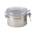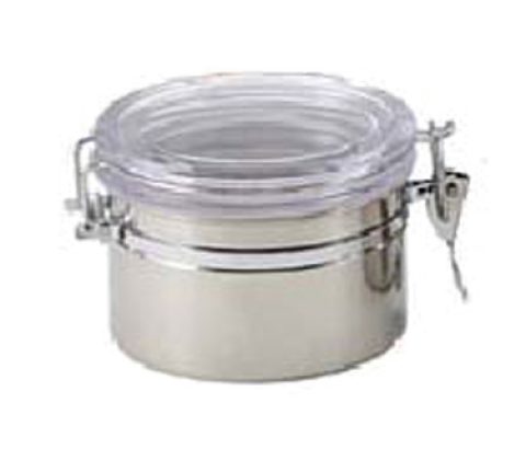 Canister, 22 oz., 3-3/4"H, with clear acrylic locking lid, 18/10 stainless steel (Stock Item)