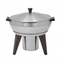 Skyra™ Wynwood Induction Chafing Dish, 2.5 qt., 10" dia. x 11"H, round, with insert, lift-off lid, fuel holder & display stand, brushed stainless steel, waterproof wood finish legs (Stock Item)