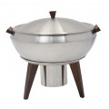 Skyra™ Wynwood Induction Chafing Dish, 5 qt., 12-3/4" dia. x 13-3/4"H, round, with insert, lift-off lid, fuel holder & display stand, brushed stainless steel, waterproof wood finish legs (Stock Item)