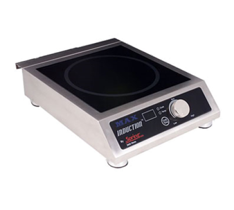 MAX Induction™ International Range, countertop, single, 12-15/16"W x 16-1/2"D x 4"H (328mm x 419mm x 102mm), low profile, SmartScan® technology with over/under voltage protection, pan size & type recognition, integrated oversized pan support, large LED power/temp display, tempered black smoked glass faceplate, 5mm tempered glass top, silicone rubber protective top seal, non-skid/non-scratch base & footing, removable mesh air filter, solid state controls, power on/off knob & power on/pan-present indicator lights, 2-function: cook or temp mode, knob-set thermostat control, lighted temperature indicator, power level: 1-20 in "cook" mode, temperature range: 110° - 400° F (43° - 204° C) in "temp mode", satin stainless steel body, 220-240v/50/60/1-ph, 2600 watt, 10.8 amps CEE-7/7 (16A) Schuko plug, FCC, ETL, UL-STD 197, cETL, ETL-Sanitation to NSF-4 (Stock Item)