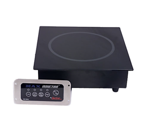 MAX Induction™ Hold Range, built-in, single, 12-5/8"W x 13-7/16"D x 3-5/16"H, SmartScan® technology with over/under voltage protection, pan size & type recognition, & large LED power/temp display, sealed induction base with flanged cooking surface, separate control panel with 43" cable, mounting frame bracket, 5mm tempered glass top, silicone rubber protective top seal, solid state controls, power on/off heavy duty touch pad & power on/pan-present indicator lights, 4-position set-hold temperature control, lighted temperature indicator, temperature range: 145° - 185°F (62° - 85°C), black stainless steel body, 110-120v/60/1-ph, 650 watt, 5.4 amps, NEMA 5-15P, FCC, ETL, UL-STD 197, cETL, ETL-Sanitation to NSF-4 (Stock Item)