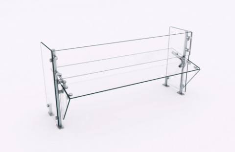 Versa-Gard Single-sided 4-Position Convertible Food Protector, Adjustable Front Panel, Fold-away Inner End Panels, Outer End Panels, 1/4" or 3/8” Clear Tempered Glass, Surface Mount, NSF/ANSI 2 Compliant
