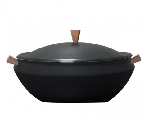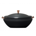 ROCKWOOD Buffet Server, 10"dia x 5.5"H, 2.5 qt, round, induction titanium matte finish, stainless steel insert, food-safe, non-porous, easy to clean, hydro-dip woodgrain coated handles, handwash only server, dishwasher safe