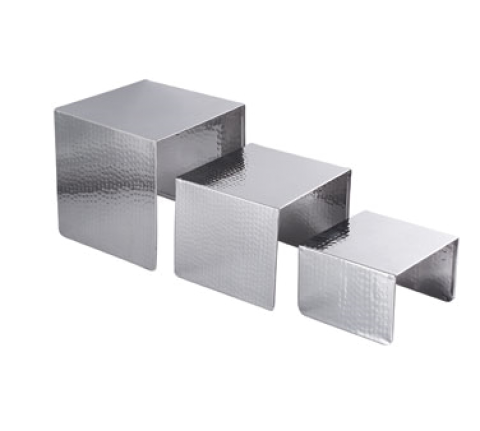 XCESSories® Riser Set, (1) 8" x 8" x 8", (1) 7" x 7" x 6", (1) 6" x 6" x 4", hammered finish, stainless steel (Stock Item)