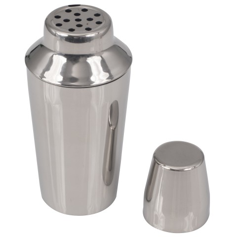 Cocktail Shaker Set, 3 piece, 16 oz., 3" dia. x 7-3/4" high (approximate O.A. size), strainer & jigger top, stainless steel with mirror finish