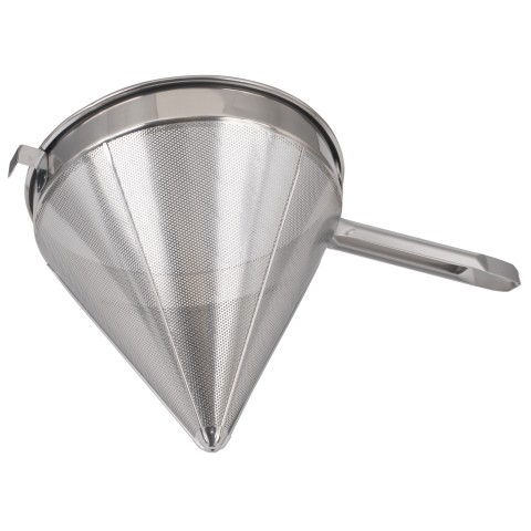 Chinese Strainer, 12" dia., fine mesh, stainless steel with reinforced rim