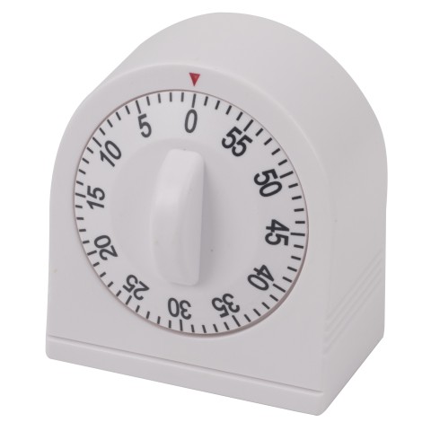 Long Ring Timer, 60 minute dial, white plastic case, carded